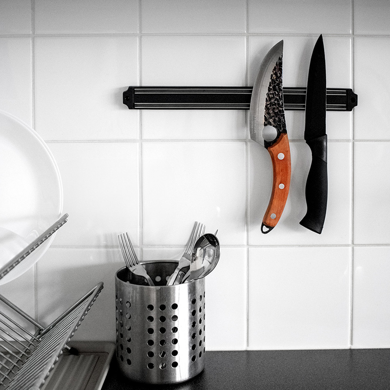 A creative way to keep your knives in a reach of a hand while preventing them from scratching against surfaces and each other. The Magnetic holder helps your knives retain their sharpness longer.