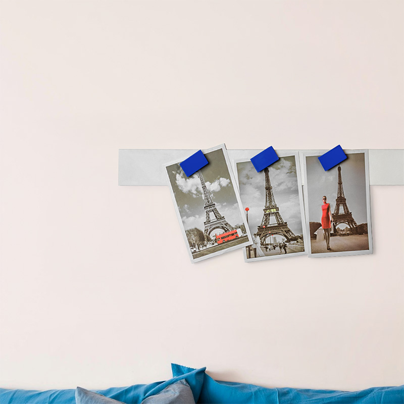 This Metal strip is an ideal surface for small magnets, perfect for attaching various items such as postcards, flyers and photos. Its back has self-adhesive foam tape for easy attachment.