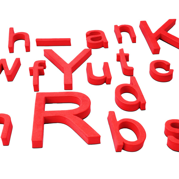 Set van 57 of 93 blauwe/ rode Magnetische letters gemaakt van een niet-toxisch, Eco-vriendelijk EVA-schuim: afhankelijk van de set met minstens 26 kapitalen en 26 kleine letters; 3 Extra kleine letters "A" en 10 punten. Ideaal voor leren en spelen. De zachte ronde duurzame eva -schuimletters worden gelamineerd met een flexibele monteermagneet, waardoor ze geschikt zijn voor elk stalen oppervlak, magnetisch whiteboard of koelkast.