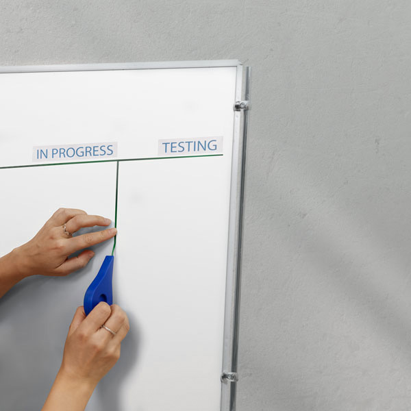 This self-adhesive Striping tape in dispenser allows you to create customizable grids on planning boards. It is easily removable for adjustments, and comes in various colors and sizes. It serves multiple purposes on planning boards, scrum boards, timelines, and tables.